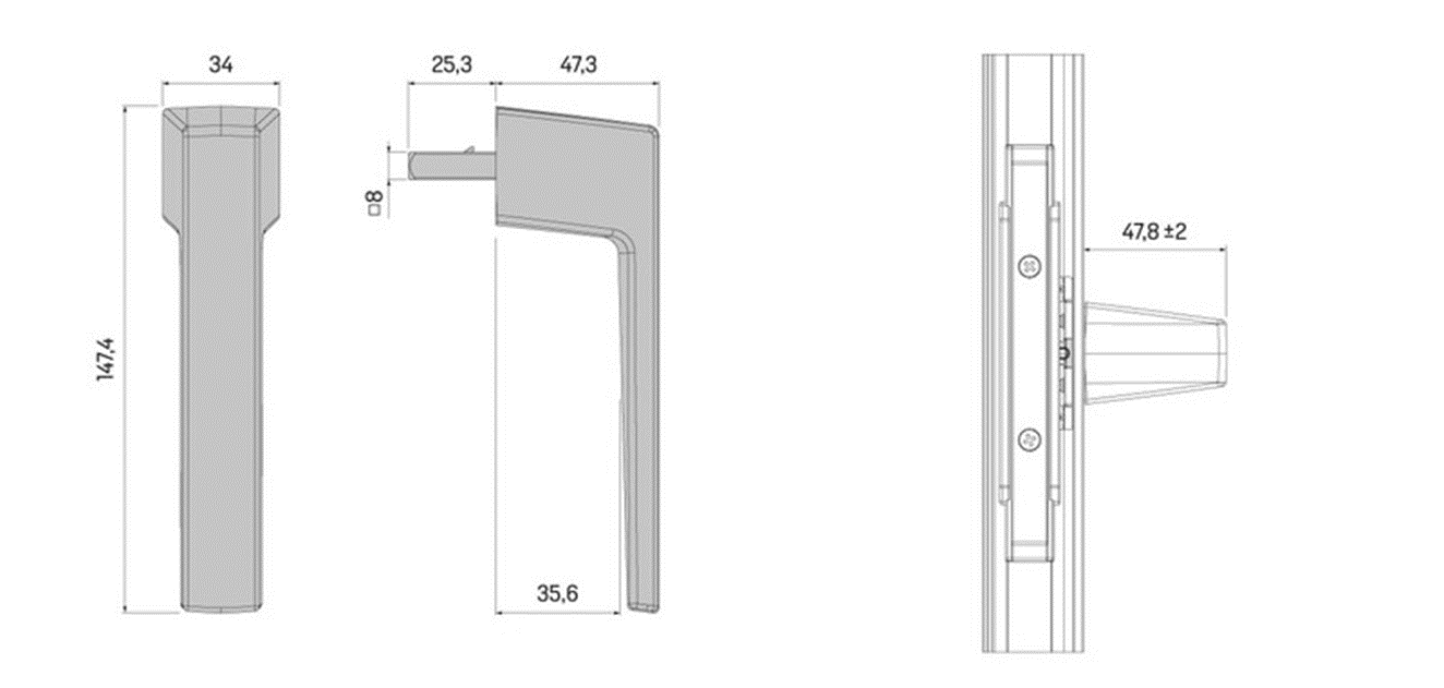 Manilla de ventana para aperturas practicables y oscilobatientes. Manilla sin escudo con dos diseños disponibles: estética delta y estética gamma. Se suministra con cuadradillo de transmisión de 8 milímetros. Caja de transmisión propia (ref. A770001). Instalación en perfiles de canal europeo con espesores de ala comprendidos entre 1.2 y 1.8 mm. Sistema de guiado de la manilla que minimiza holguras.
